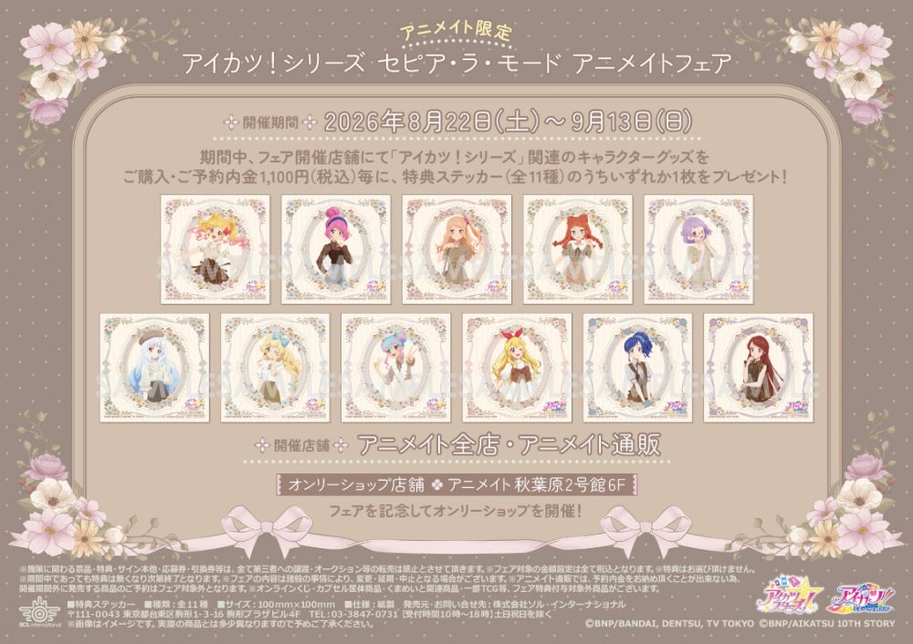 「アイカツ!シリーズ セピア・ラ・モード アニメイトフェア」開催決定!!