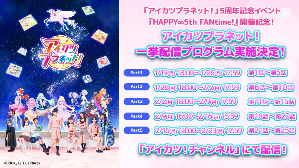 「アイカツプラネット!」5周年記念イベント『HAPPY∞5th FANtime!』開催記念!『アイカツ!チャンネル』での「アイカツプラネット!」本編の一挙配信プログラム実施が決定!